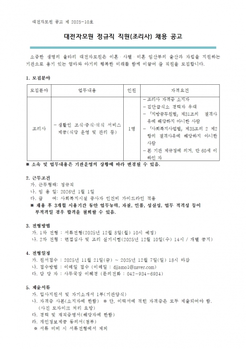´ëÀüÀÚ¸ð¿ø Á¤±ÔÁ÷ Á÷¿ø(Á¶¸®»ç) ä¿ë °ø°í