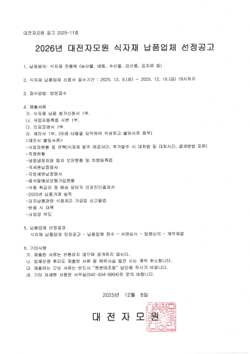 2026³â ´ëÀüÀÚ¸ð¿ø ½ÄÀÚÀç ³³Ç°¾÷ü ¼±Á¤°ø°í