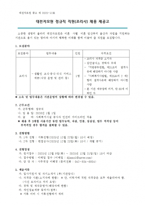 ´ëÀüÀÚ¸ð¿ø Á¤±ÔÁ÷ Á÷¿ø(Á¶¸®»ç) ä¿ë Àç°ø°í