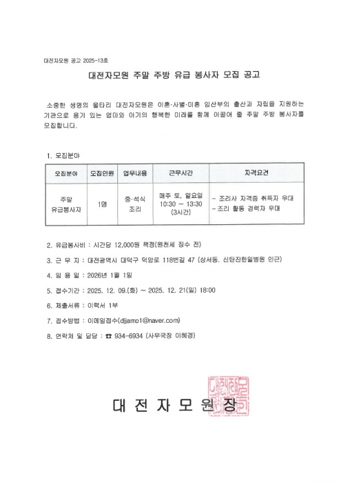 ´ëÀüÀÚ¸ð¿ø Á¤±ÔÁ÷ Á÷¿ø(Á¶¸®»ç) ä¿ë Àç°ø..