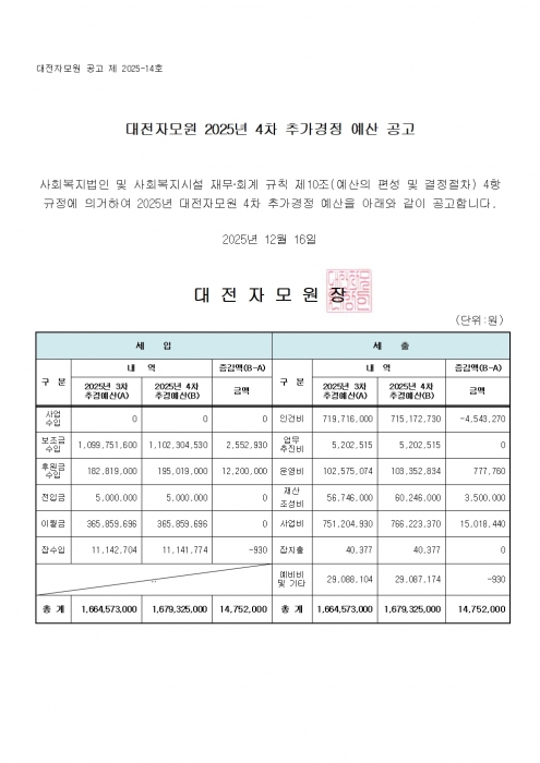 ´ëÀüÀÚ¸ð¿ø 2025³â 4Â÷ Ãß°¡°æÁ¤¿¹»ê °ø°í