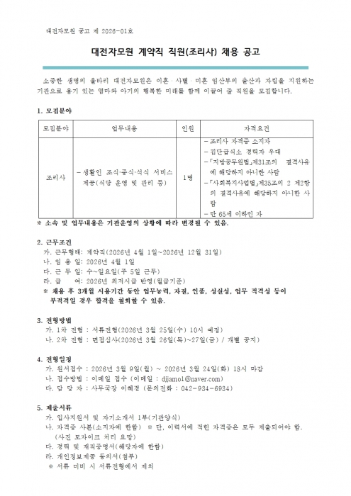 ´ëÀüÀÚ¸ð¿ø °è¾àÁ÷ Á÷¿ø(Á¶¸®»ç) ä¿ë °ø°í