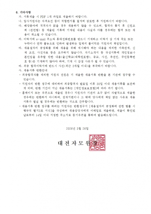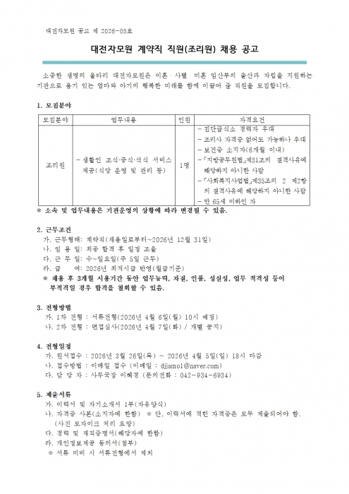´ëÀüÀÚ¸ð¿ø °è¾àÁ÷ Á÷¿ø(Á¶¸®¿ø) ä¿ë °ø°í
