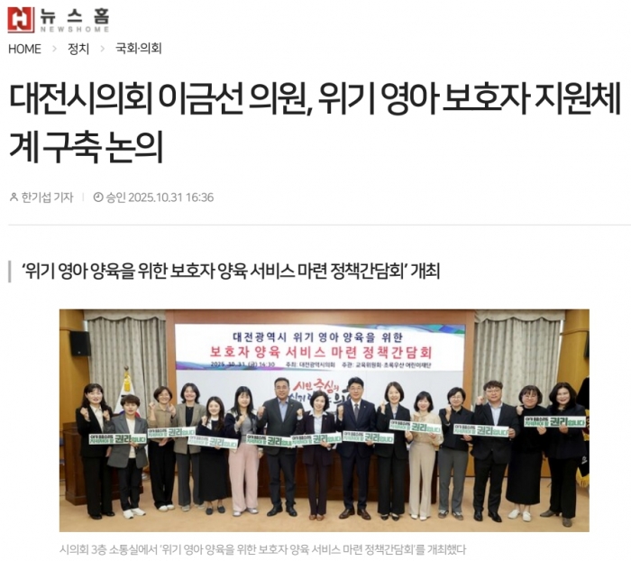 ´ëÀü½ÃÀÇȸ À̱ݼ± ÀÇ¿ø, À§±â ¿µ¾Æ º¸È£ÀÚ Áö¿øÃ¼°è ±¸Ãà ³íÀÇ < ±¹È¸¡¤ÀÇȸ < Á¤Ä¡ < ±â»çº»¹® - ´º½ºÈ¨(newshome)