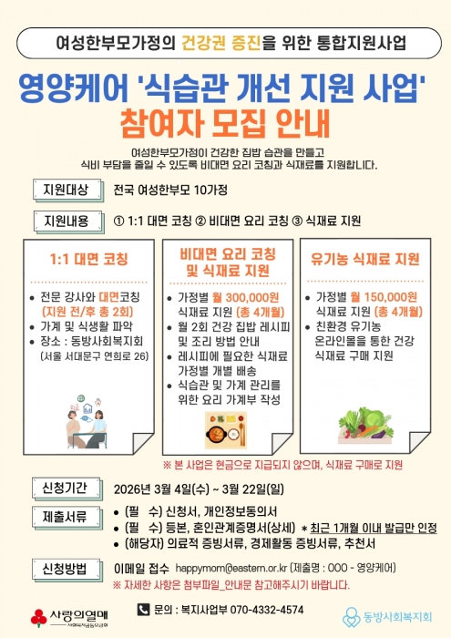 [µ¿¹æ»çȸº¹Áöȸ] ¿©¼ºÇѺθð°¡Á¤ÀÇ °Ç°±Ç ÁõÁøÀ» À§ÇÑ ÅëÇÕÁö¿ø»ç¾÷ '¿µ¾çÄɾî' ½Ä½À°ü °³¼± Áö¿ø»ç¾÷